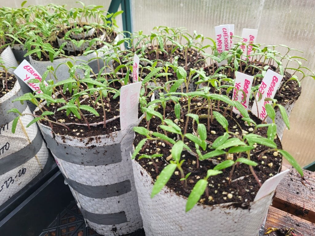 If you look at the photo below, you will notice that I sow similar tomatoes together in the same seed snail. For example, slicing tomatoes such as the Cherokee Purple is sown in the same seed snail as the Cherokee Green. This allows them to transplant them in the same row, making it easier to succession plant the new transplants later in the season.